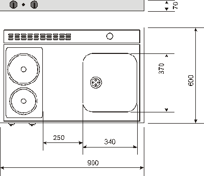 Edelstahl-Herd-Spültisch-Kombinationen bestehend aus: 1 Becken und geprägter Abtropffläche, inkl. Ab- und Überlaufgarnitur 2-Platten-Kochfeld bestehend aus 1 Kochplatte mit 145 mm Durchmesser und 1 Normalkochplatte mit 180 mm Durchmesser, jeweils 1500 Watt Steckerfertig, Anschlusswert: 230 V/16A, mit 2 x 7-Takt-Schalter, Betriebskontroll-Leuchte, integrierter Hitzeschutz