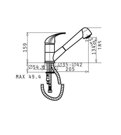Einhebelmischer mit herausziehbarer Schlauchbrause, umstellbar