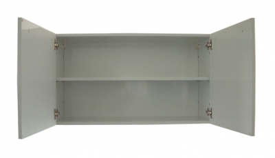 Der Korpus und die Türen sind aus Edelstahl matt geschliffen. Jeder Hängeschrank wird mit einem variabel einbaubaren Einlegeboden geliefert.